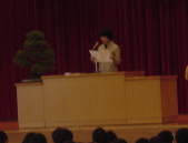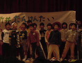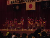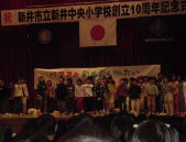 | 中央小学校が10歳になったよ 2000年新井中央小学校が10歳になりました。 そして11月12日に中央小10周年記念式典がありま した。 第一部は市長さんたちのお話しとかがありました。 そしていよいよ第二部は私たちの出番です。 三年生は今までのさくら活動で、名人を探したことを げきにあらわしたり、言葉であらわしたり、歌であらわ したり、ダンスであらわしたりしました。自分の番がきた ときは、すごく緊張したけどみんな一生懸命がんばり ました。みんなの心がひとつになってうまくできました。 式典が終わってから、先生たちが「みんなすごく よかったよ」と感動していました。 私は心の中で「よかった」と思いました。 練習は大変だったけど、とても楽しかった発表会でした |